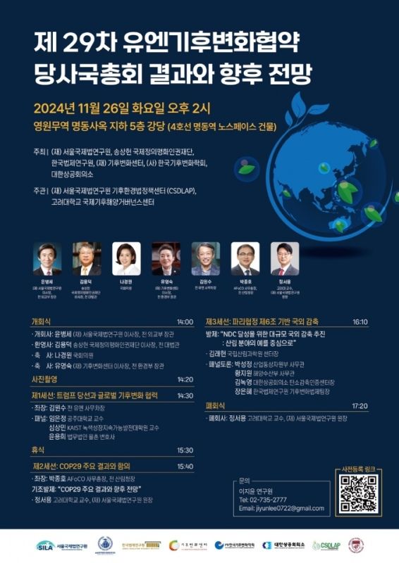 The COP29 Seminar, titled 'Outcomes and Future Prospects of the 29th UNFCCC Conference of the Parties,' was held on November 26th at 2:00 PM.